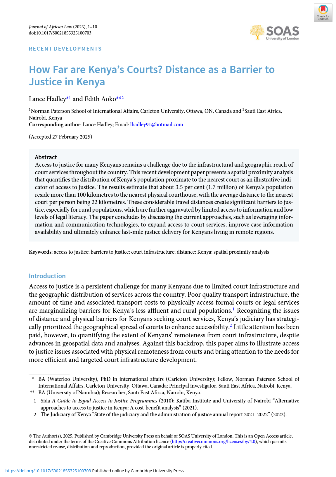 Distance as a Barrier to Access to Justice in Kenya